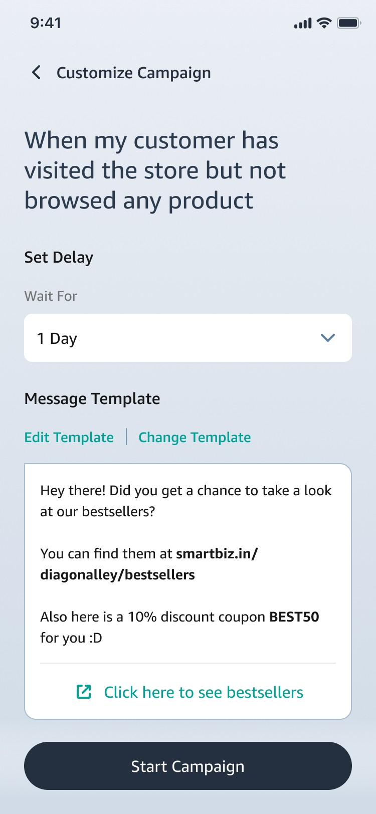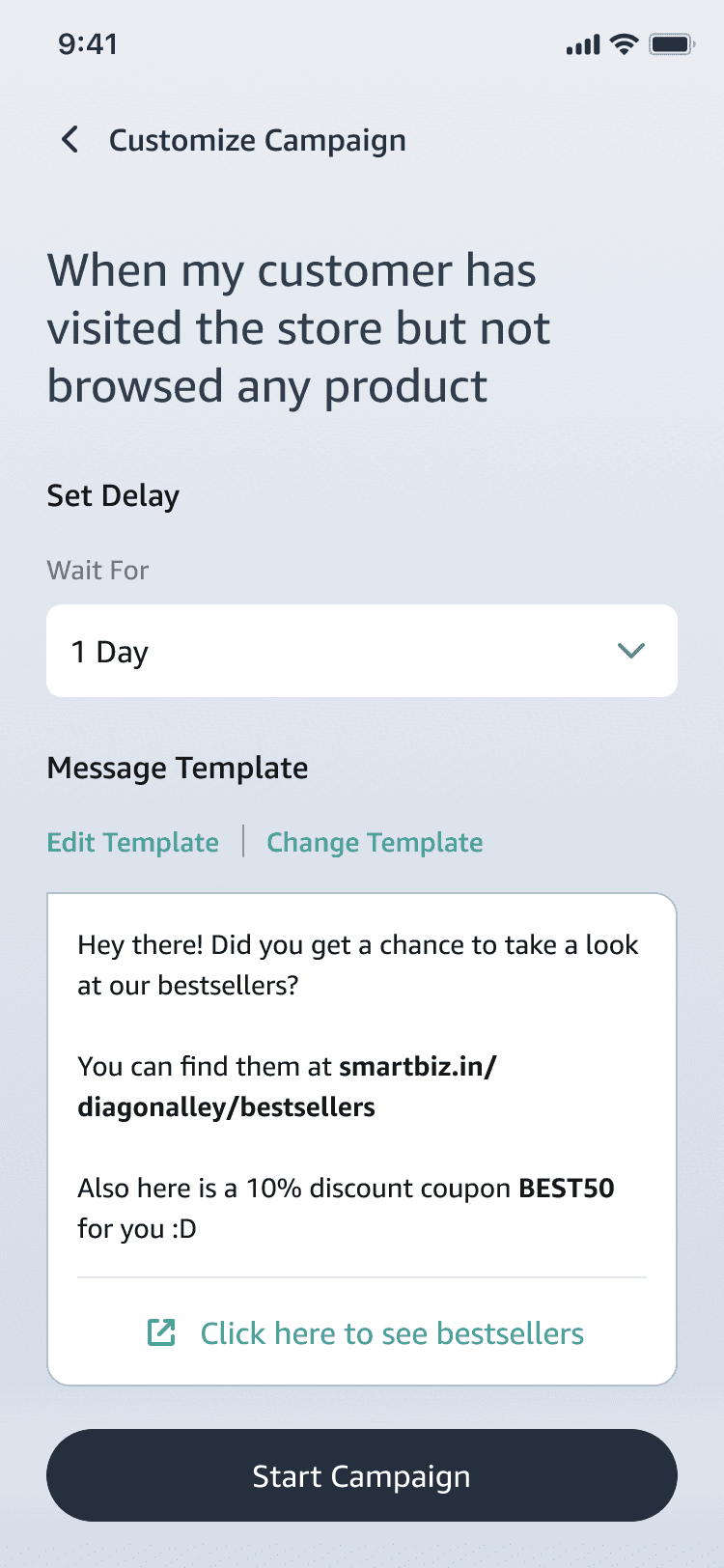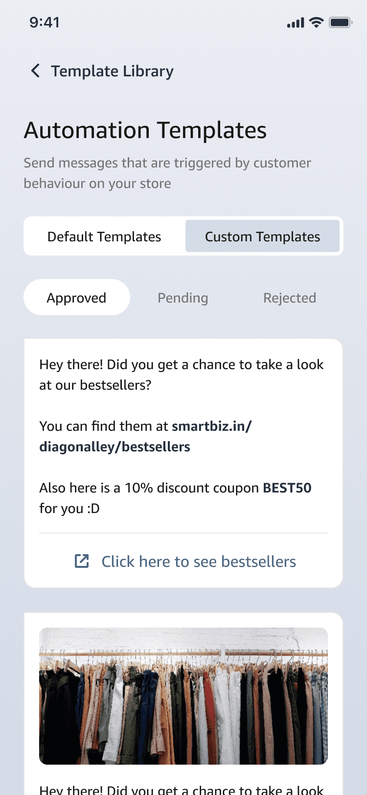 To streamline campaign setup, the system included pre-approved WhatsApp templates, allowing sellers to launch messages instantly without waiting for approval. These templates covered common use cases while ensuring compliance, with options for customisation.