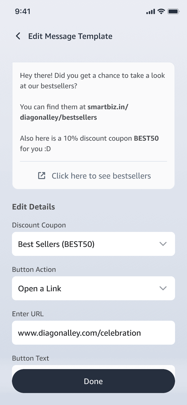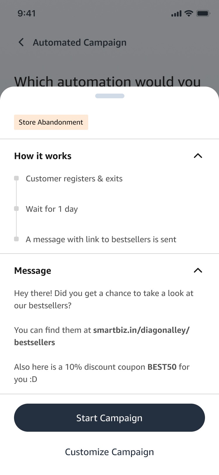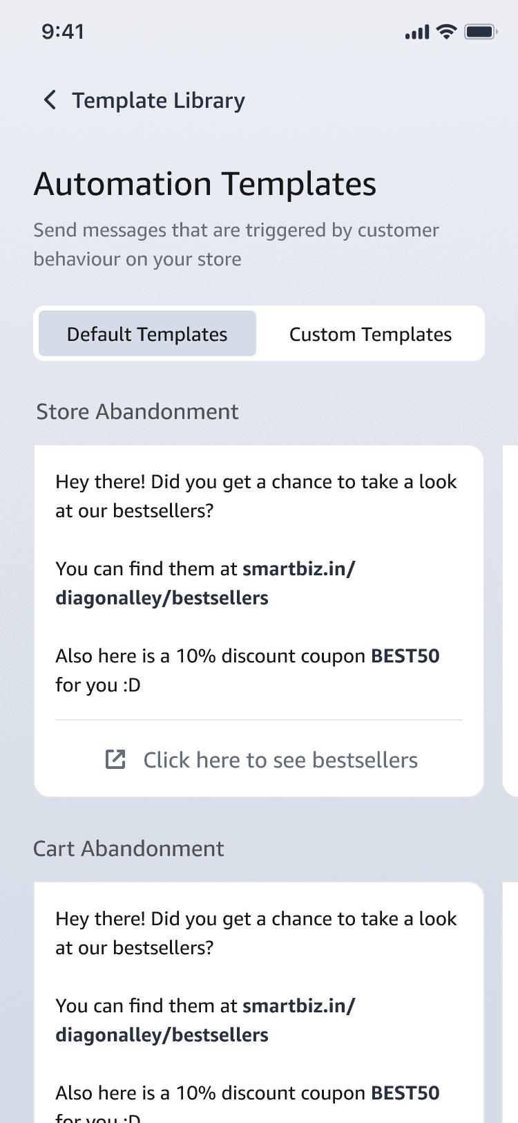 To streamline campaign setup, the system included pre-approved WhatsApp templates, allowing sellers to launch messages instantly without waiting for approval. These templates covered common use cases while ensuring compliance, with options for customisation.